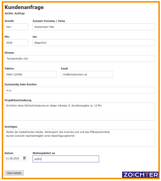 Alle offenen Anfragen und ihr Bearbeitungsstatus kann in einer Liste abgerufen werden. So sehen Sie, welche Anfragen noch nicht bearbeitet wurden und ob bereits ein Angebot erstellt wurde. Doch nicht nur das, auch wenn Sie der Interessent kontaktiert, sind Sie jederzeit bestens vorbereitet: Sie haben immer Zugriff auf alle Belege – Fotos, Pläne, Angebote, Kalkulationen etc. – zu dieser Anfrage.